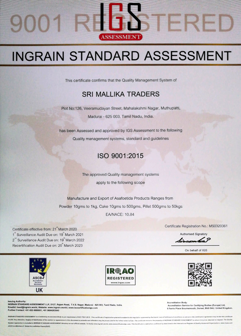 Sri Mallika Traders and Sri Mallika Trading Company promoted by Mr. Kalyana Kumar. We are basically a Compounded Asafoetida manufacturing company. Our brand name is managed by smart professionals in all fields for the development of our company.
